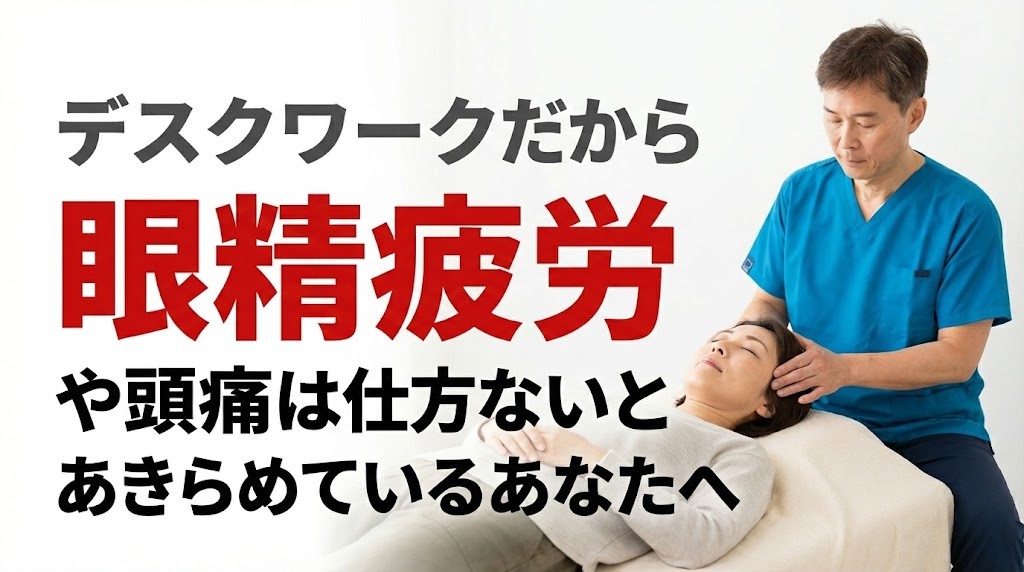 パソコン作業が中心の仕事で、半年ほど前から目の奥が痛くなり、それと同時に頭痛もひどくなってきました。眼科に行っても「異常なし」と言われ、痛み止めを飲んでも効かず、どうしたらいいのかわからなくなっていました。