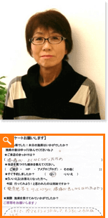 ヘルニアを患い、寝返りも痛かったのですが、ご近所の方に「こういうのも相性だから1度行ってみたら。」と紹介していただき、こちらで診ていただくようになりました。